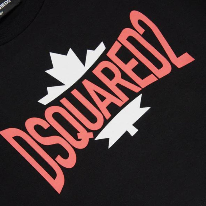 Cropped crew-neck T-shirt in short-sleeved jersey. Featuring a Dsquared2 logo with contrasting color leaf graphic on the front. Made of 1% cotton. An ideal garment for extremely feminine casual looks.