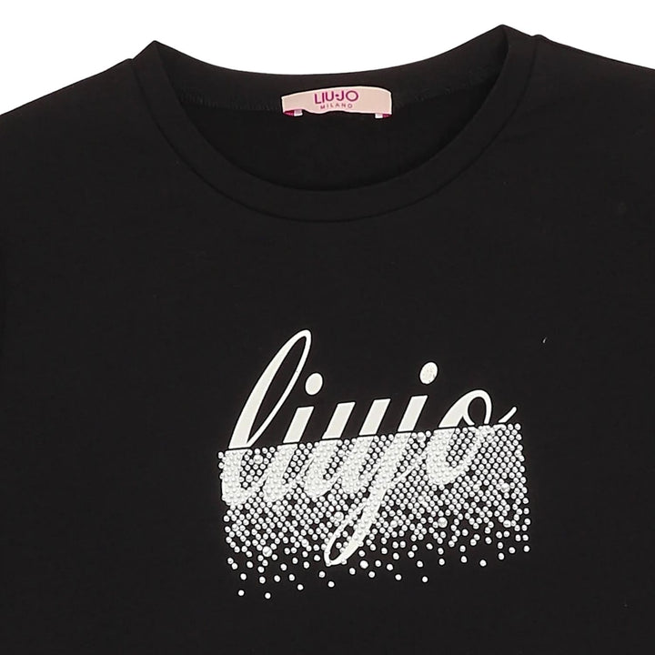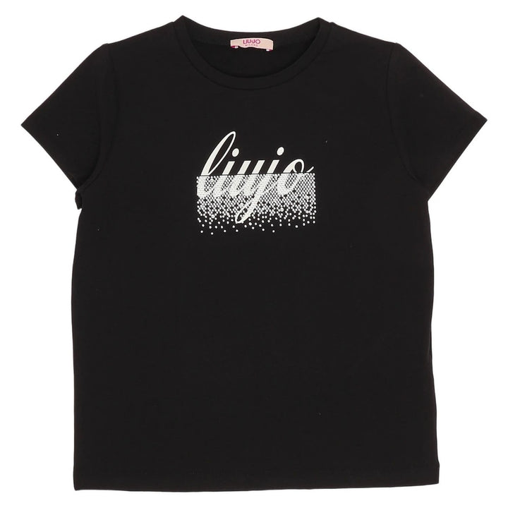 Crafted from soft cotton with a hint of stretch, this black T-shirt features a stylish logo print on the front. Designed for all-day comfort, it is a versatile piece perfect for casual wear.