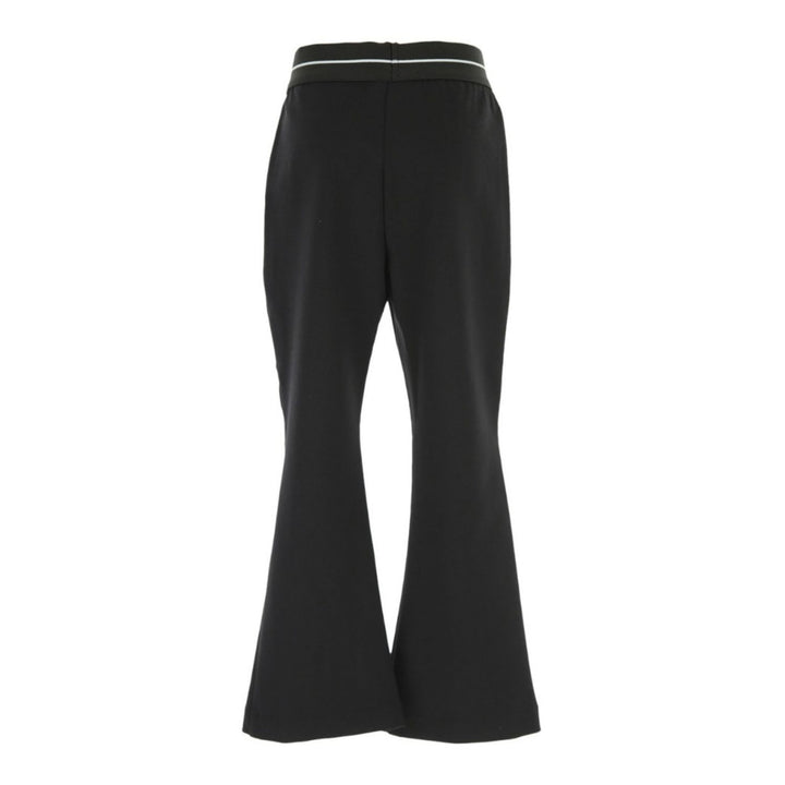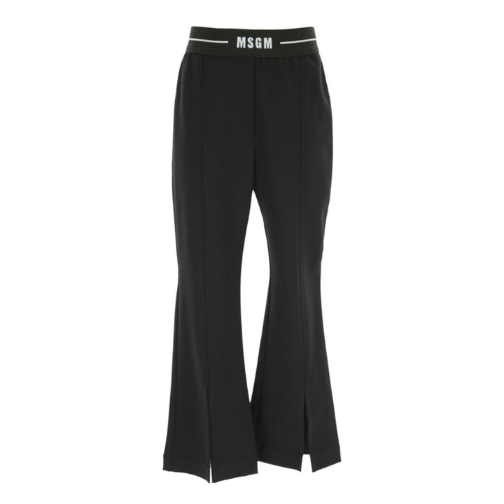 Black trousers for girls by Italian brand MSGM, with slightly flared bootcut look and front seam details. Smart casual and easy to pair with most things, the elasticated waistband has a black and white jacquard logo for an added designer touch. Soft