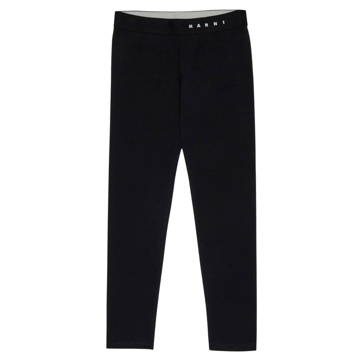 These black leggings from Marni Kids are a versatile wardrobe staple, featuring a comfortable elasticated waistband with a logo detail for a branded touch. Designed with a straight leg and crafted from a soft cotton-elastane blend, they offer both st