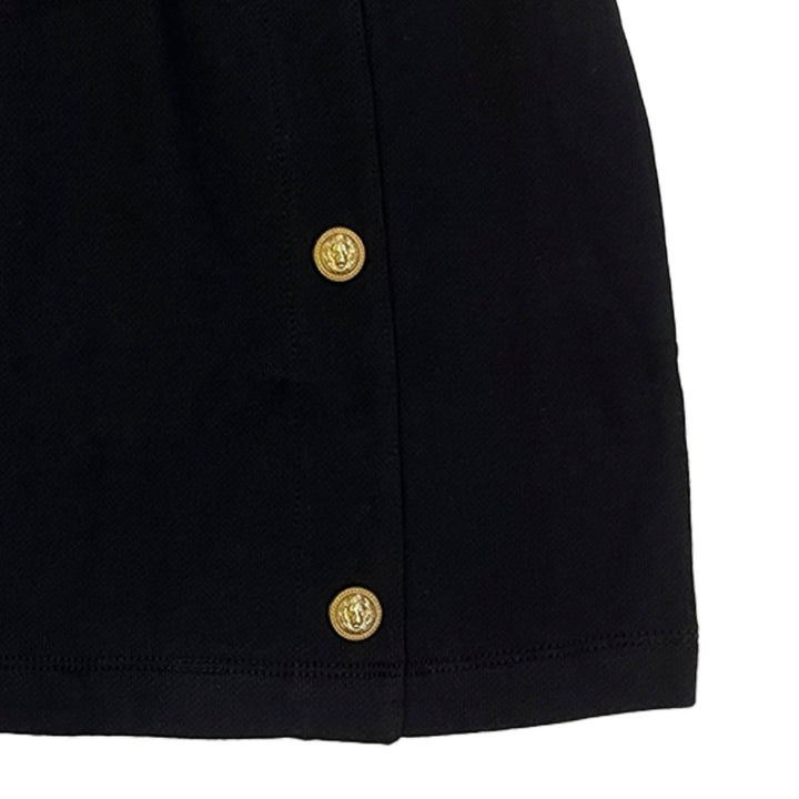 Add a touch of Parisian elegance to her wardrobe with this black mini skirt from Balmain. Crafted from a structured fabric for a polished silhouette, it features gold-toned decorative buttons and detailing that echo the brands signature military-inspired style. With a fitted waist and chic mini length, this skirt is perfect for both dressy occasions and elevated everyday looks.