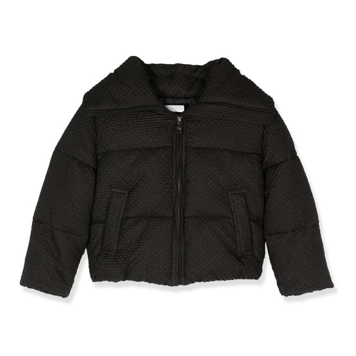 Girls Black Padded Long-Sleeve Hooded Jacket
