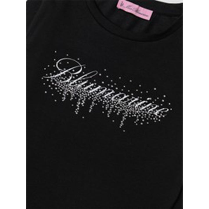 Girls Black Rhinestone-Embellished Logo T-Shirt
