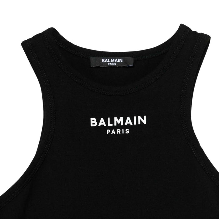 Girls Black Rubberised-Logo Tank Top