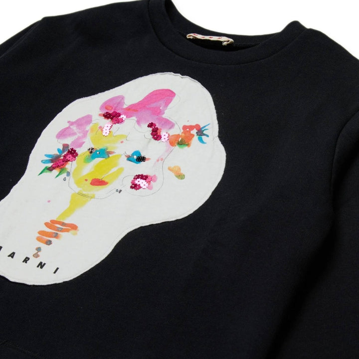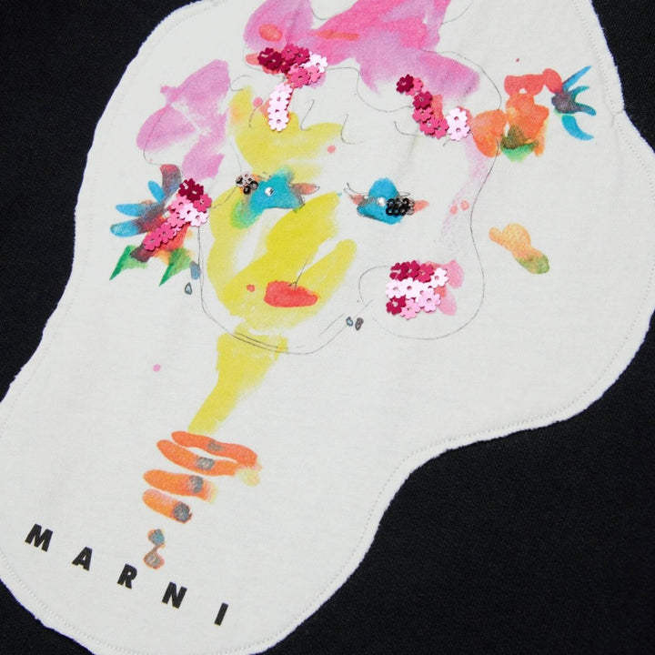 Elevate casual dressing with this black cotton sweatshirt from Marni Kids. Featuring unique applique detailing for a modern twist, its designed with a classic crew neck, long sleeves, and ribbed cuffs and hem for a snug, comfortable fit. Crafted from 100% cotton, this piece blends style and everyday ease.