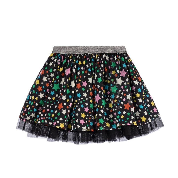 Patterned with vibrant and colourful stars, this black tutu skirt for girls is from Stella McCartney Kids. It is made in sheer crepe chiffon with voluminous tulle underlayers which can be seen below the hem. This easy-to-wear style has a stretchy, silver glitter waistband to complete the party-ready look. The Stella McCartney fit can be quite small so choose a size up if you want room to grow.