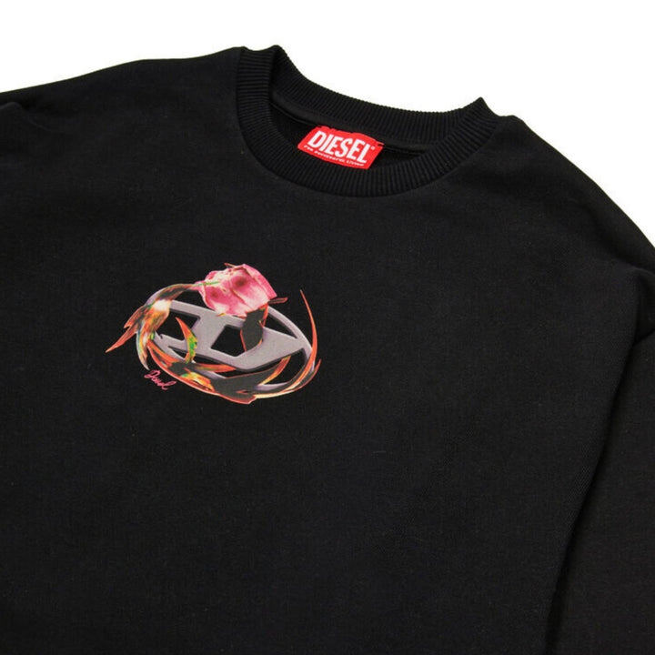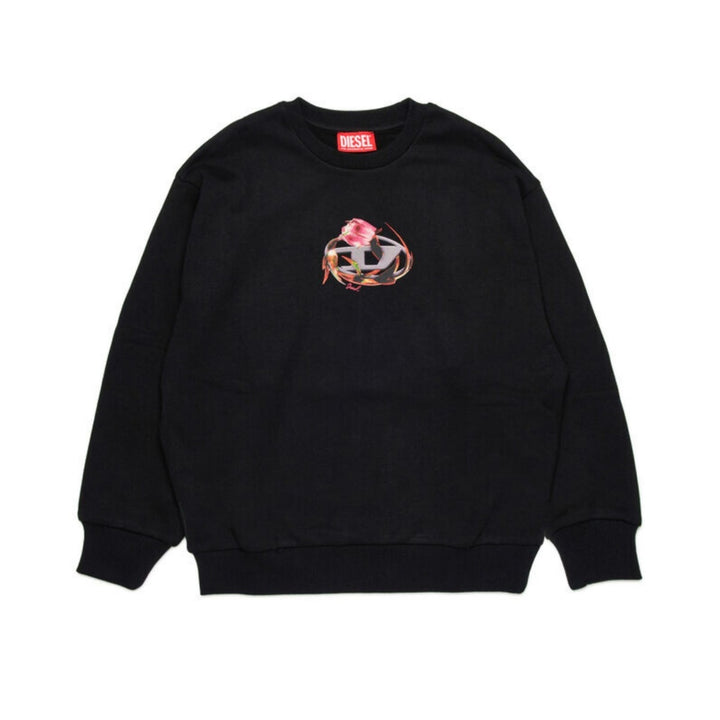 This girls sweatshirt is made from soft cotton and decorated with a print featuring a flower that intertwines with the Oval D logo.