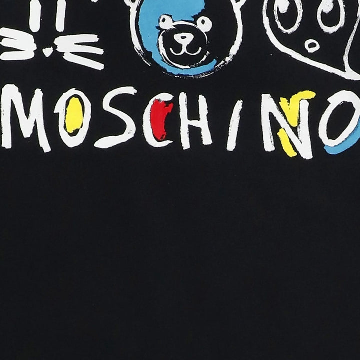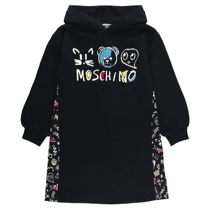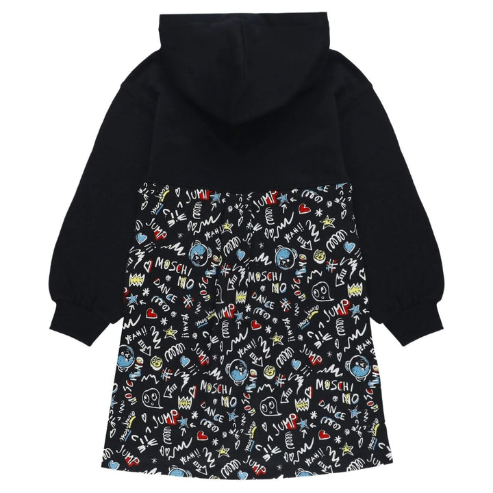 Girls Black Teddy Bear Logo-Print Hooded Dress