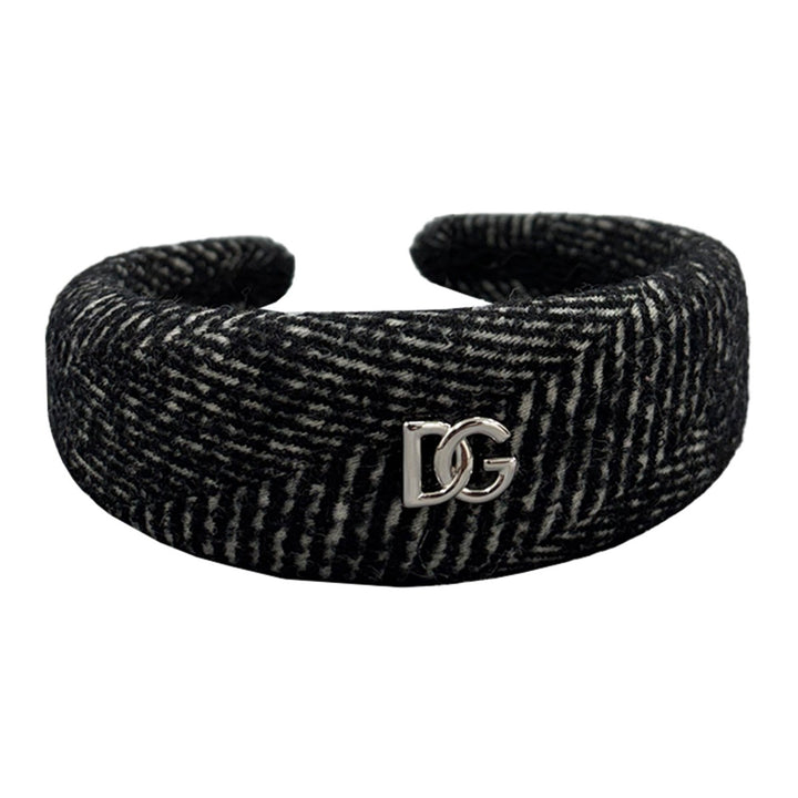 Add a touch of Italian elegance to her look with this black tweed hairband from Dolce & Gabbana Kids. Crafted with a classic textured finish, it features a sparkling diamante-embellished logo at the frontbringing a refined, statement touch to any outfit. Whether styled with everyday ensembles or occasionwear, this accessory adds instant charm and designer flair.