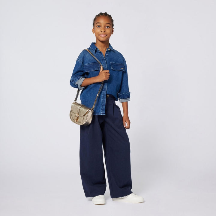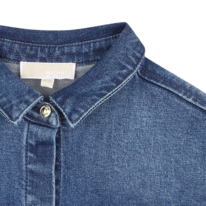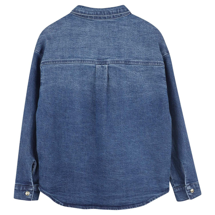 Girls blue denim slim-fit shirt crafted from a soft cotton blend with stretch for easy movement.