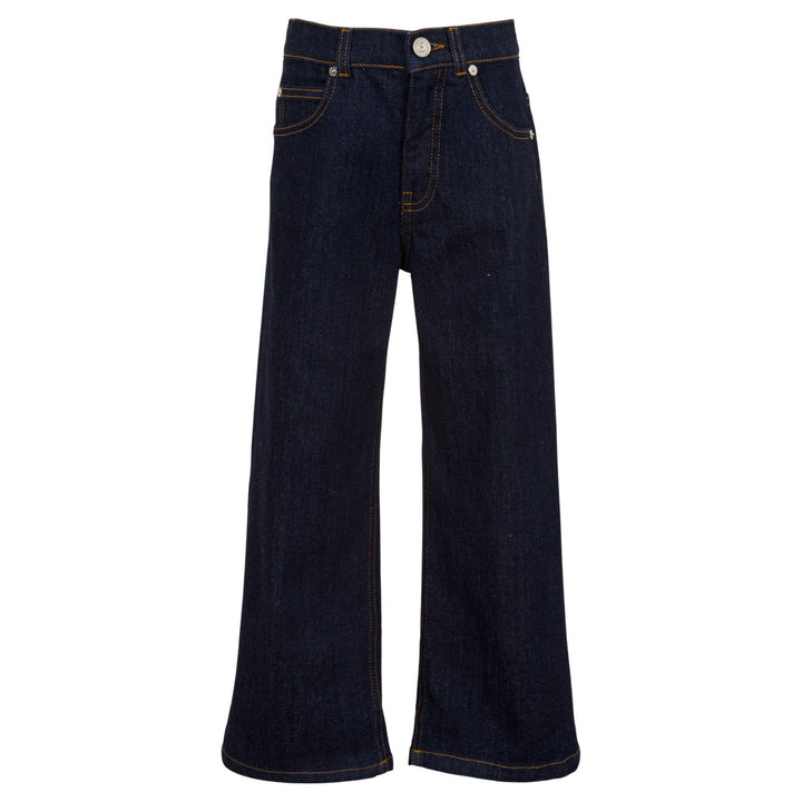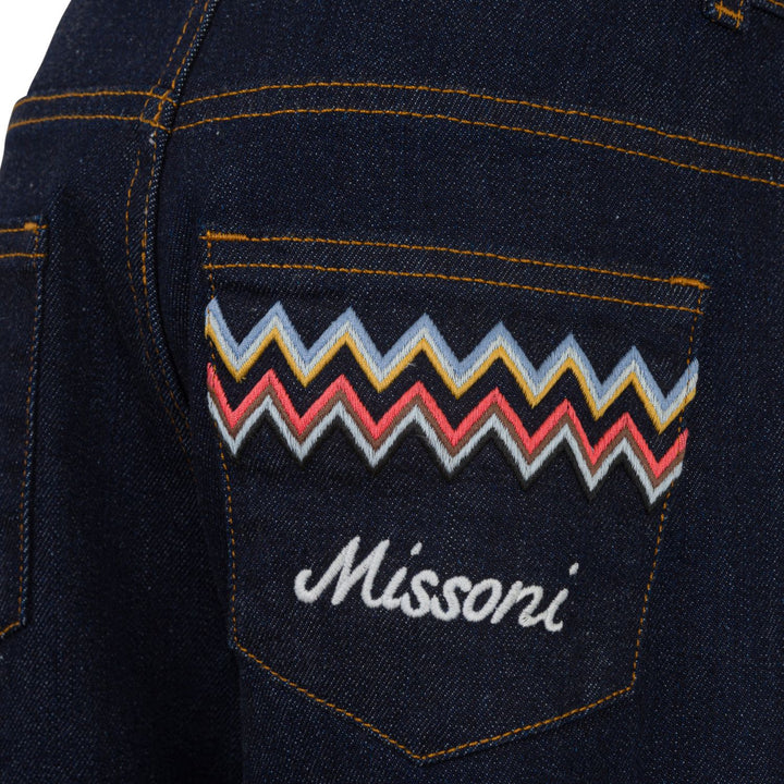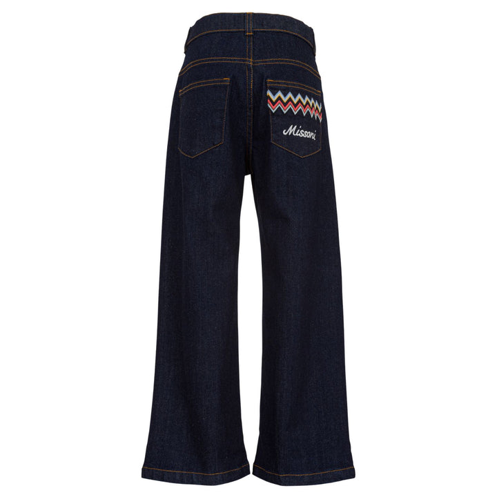 Girls blue embroidered-logo pocket wide-leg jeans by Missoni made from premium denim, featuring a relaxed silhouette with signature embroidered logo detailing on the pocket, blending comfort with effortless Italian style.