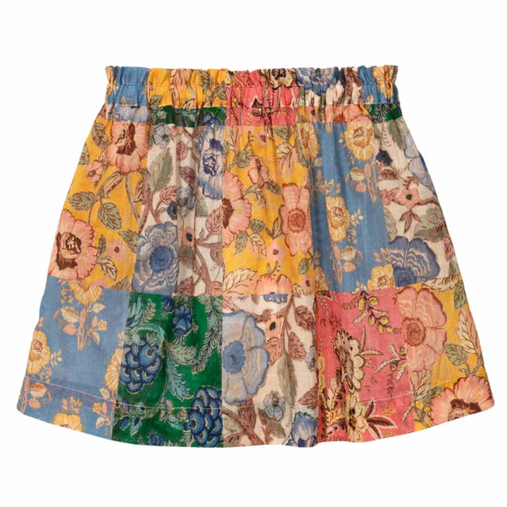 In complementary shades of blue, yellow and pink, this lovely, lightweight skirt for girls is by luxury Australian designer Zimmermann. Made in soft and slightly sheer cotton, this resort-wear piece has deep front pockets with defining crochet trims.