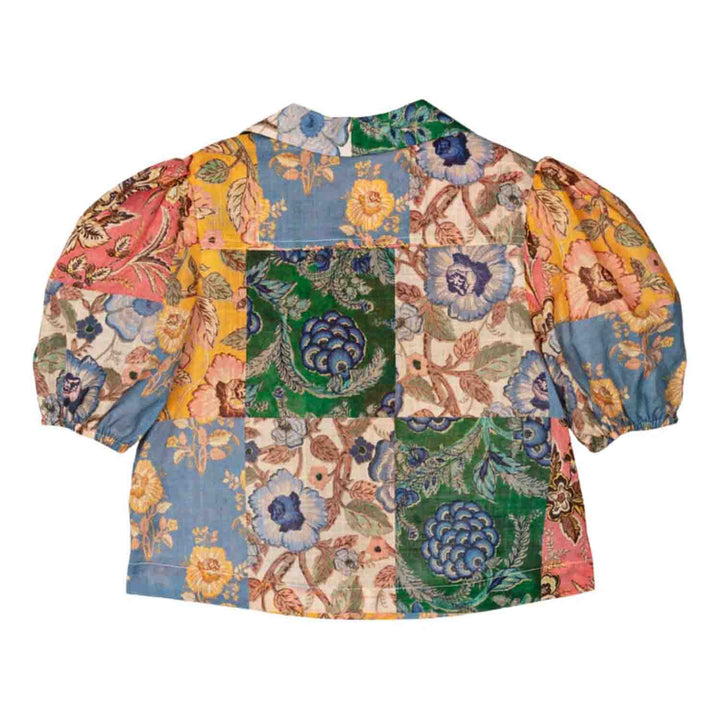 In complementary shades of blue, yellow and pink, this lovely shirt for girls is by luxury Australian designer Zimmermann. Made in lightweight and semi-sheer cotton, this resort-wear piece has an open collar and short sleeves with elasticated cuffs.