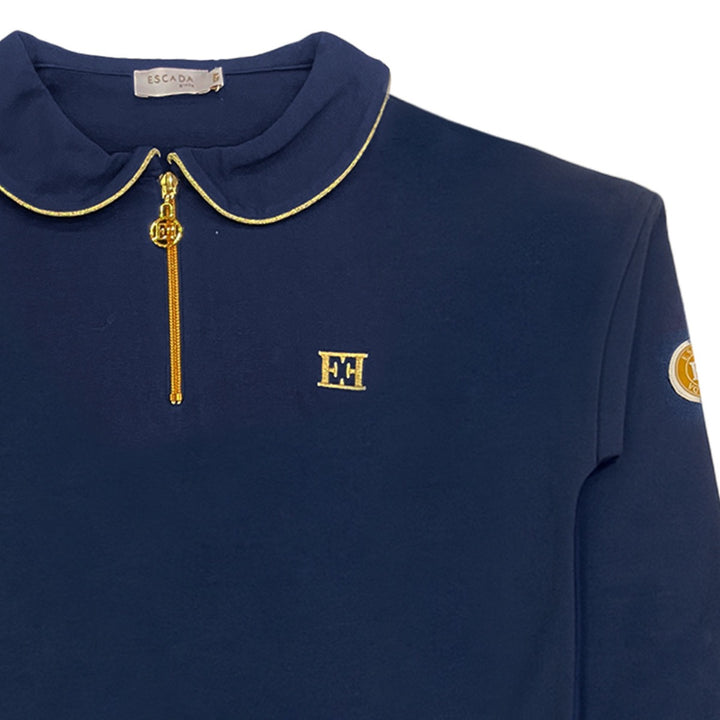 This Escada girls zip-up sweatshirt in blue features elegant logo embroidery for a stylish touch. Crafted from 95% cotton and 5% elastane, it provides a soft feel with just the right amount of stretch for comfort and ease.