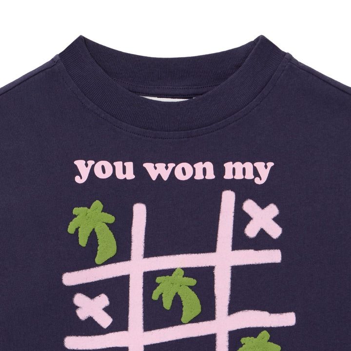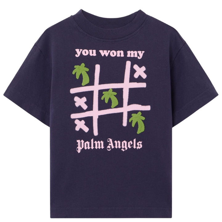 Girls blue T-shirt by Palm Angels crafted from soft cotton, featuring a bold front logo print, crew neckline, and relaxed fit for a cool, everyday streetwear vibe.