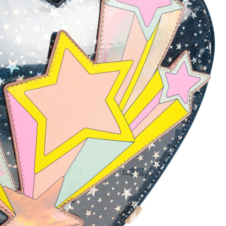 A spacious and stylish backpack crafted from durable polyester with a PVC coating. Featuring a playful star patch design, it is perfect for school, outings, or travel, offering both functionality and a fun, youthful style.