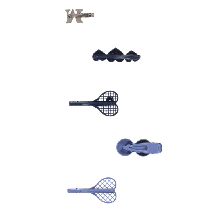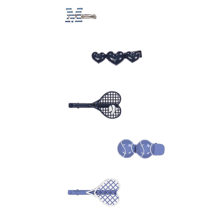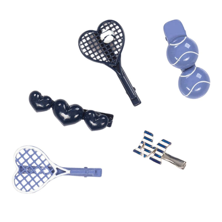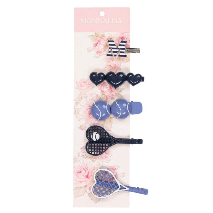 A cute five pack of blue sporty hair clips for girls by Monnalisa, great for adding a tennis-inspired touch to your little one's looks. Each piece easily attaches to the hair with a simple clip fastening, with useful grips so they stay in place.