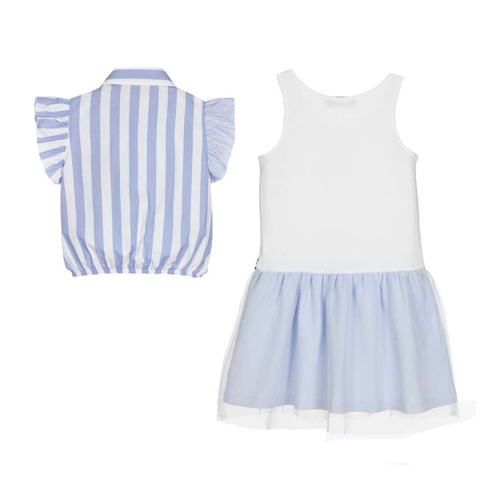 Girls Blue & White Dress Set