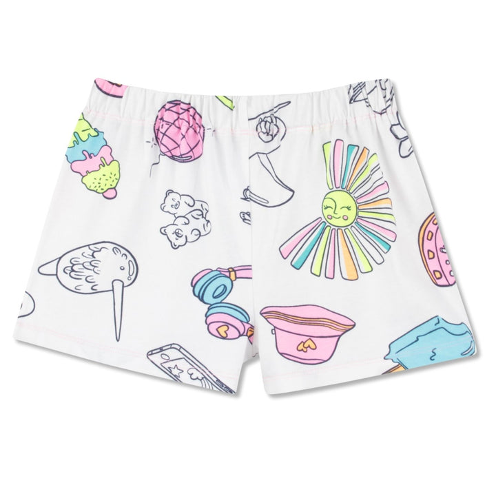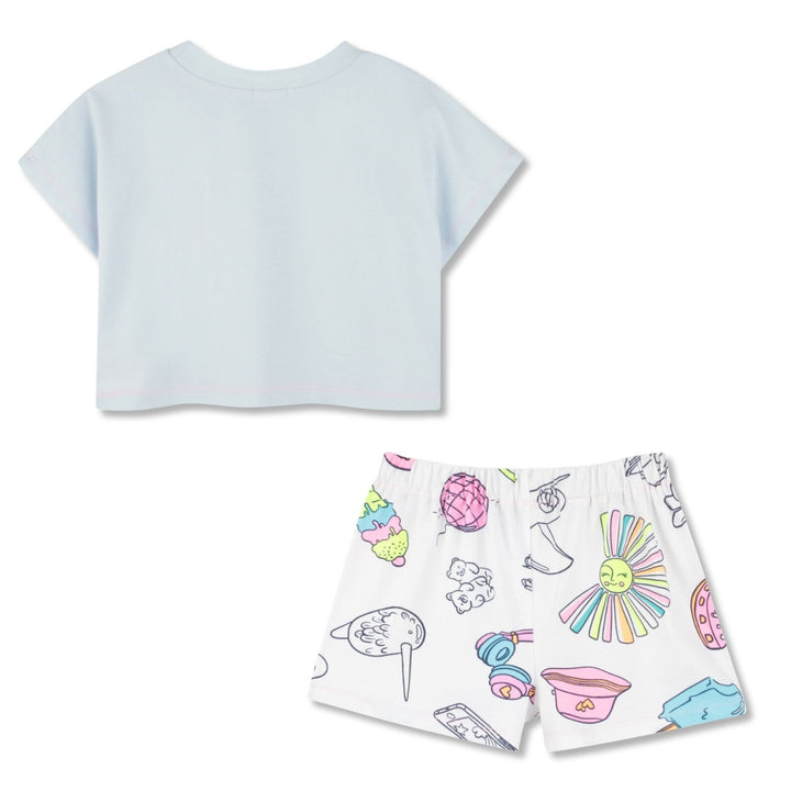 Girls Blue & White Printed Shorts Set