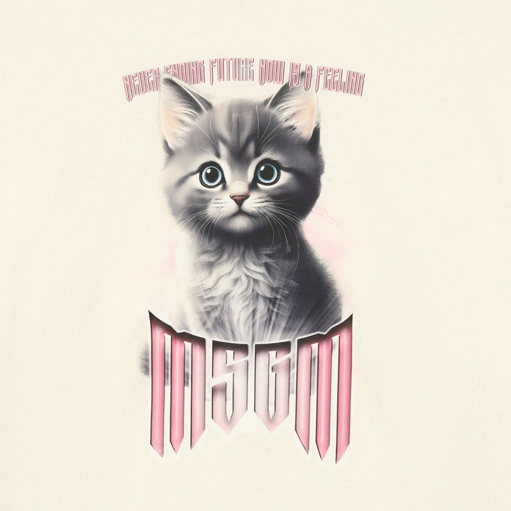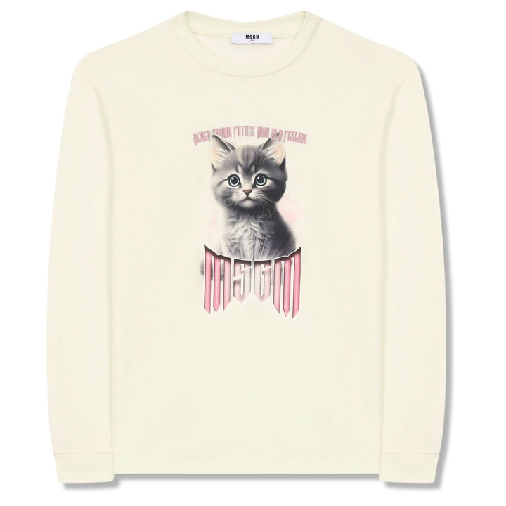 Girls Cream Cat-Print T-Shirt