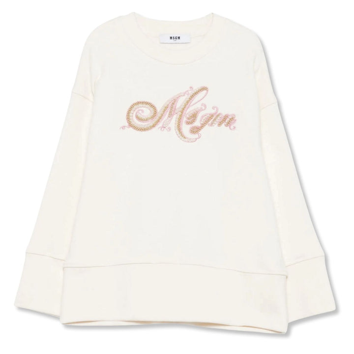 Girls Cream Embroidered Logo-Print Sweatshirts