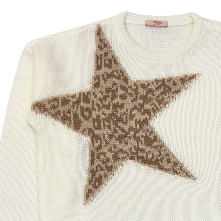 This cozy cream knitted sweater features a charming star print design, adding a playful touch to your girls winter wardrobe. Crafted from a soft and warm blend of polycarbonate, polyamide, and wool, it offers both comfort and durability perfect for l