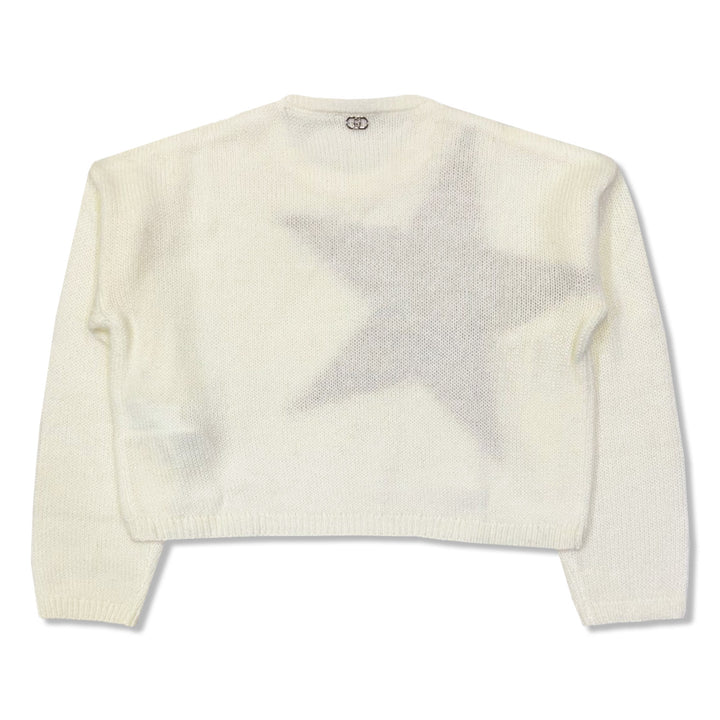 This cozy cream knitted sweater features a charming star print design, adding a playful touch to your girls winter wardrobe. Crafted from a soft and warm blend of polycarbonate, polyamide, and wool, it offers both comfort and durability perfect for layering on chilly days.