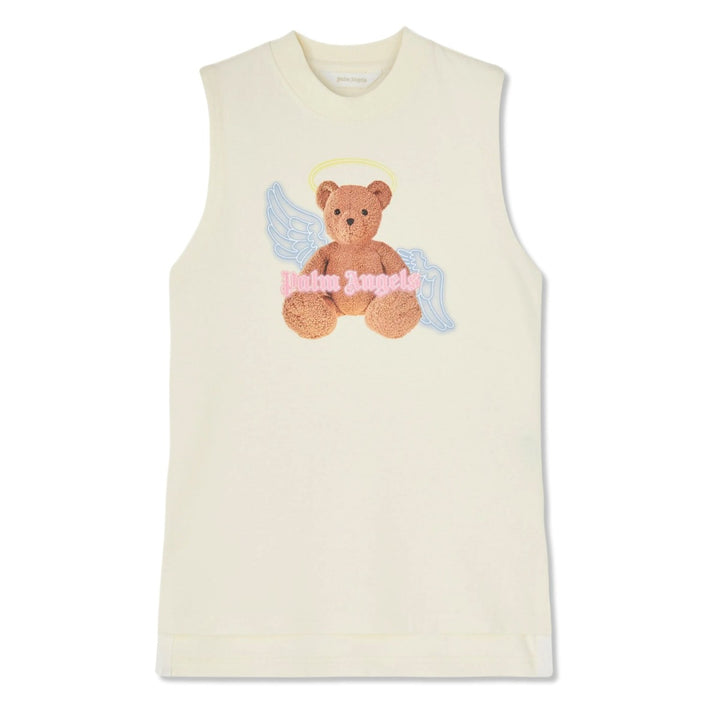 Girls Cream Teddy-Bear Logo Print Dress