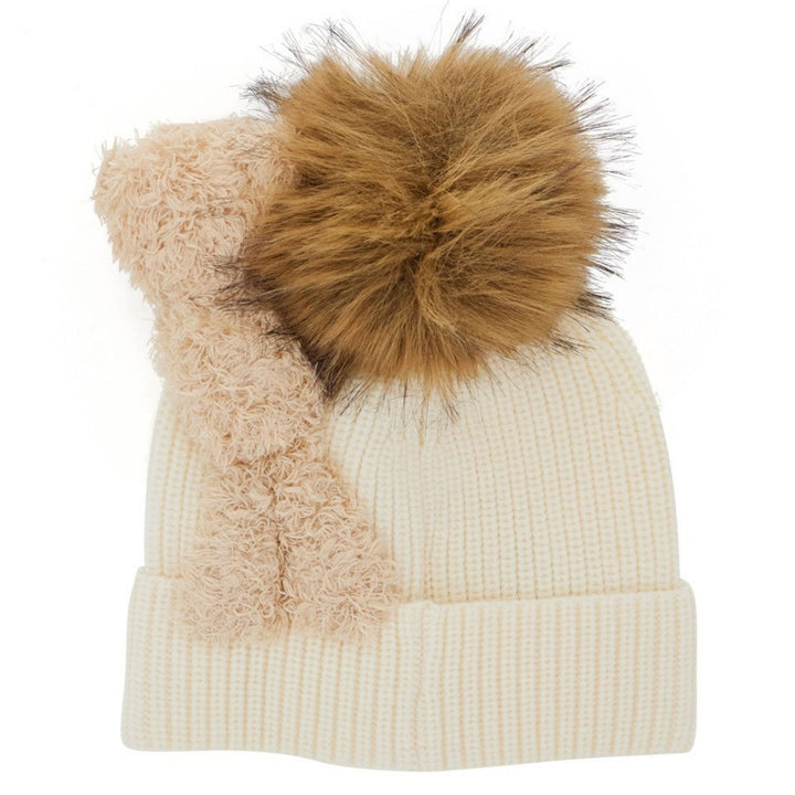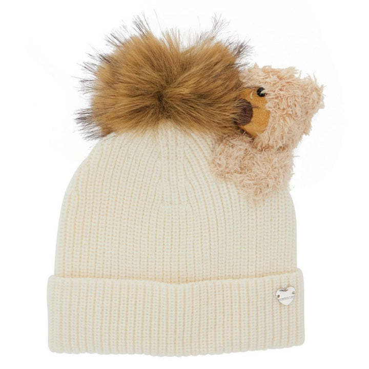 Girls Cream Teddy Knitted Beanie