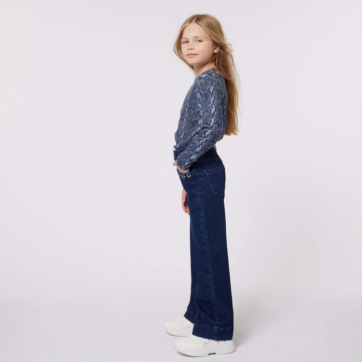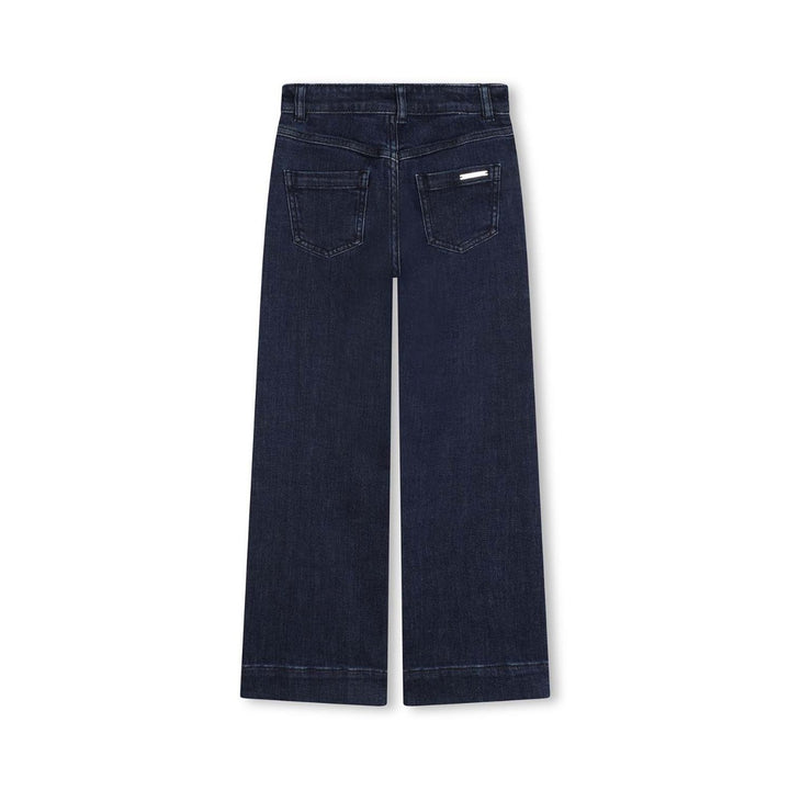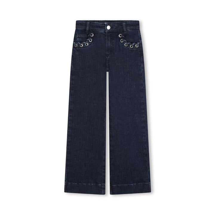 Girls Denim Blue Eyelet-Detail Cotton Jeans