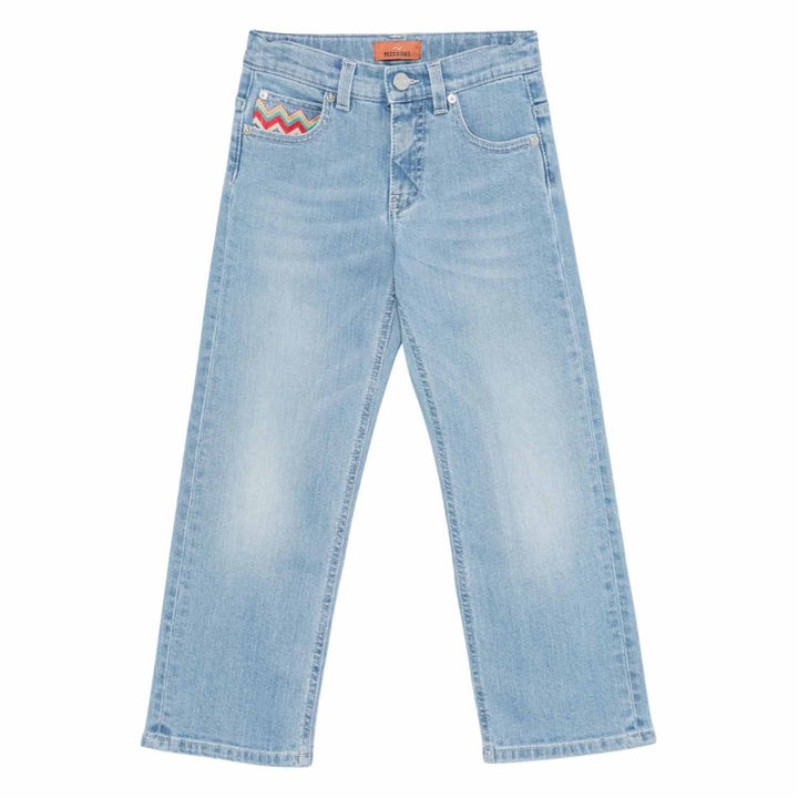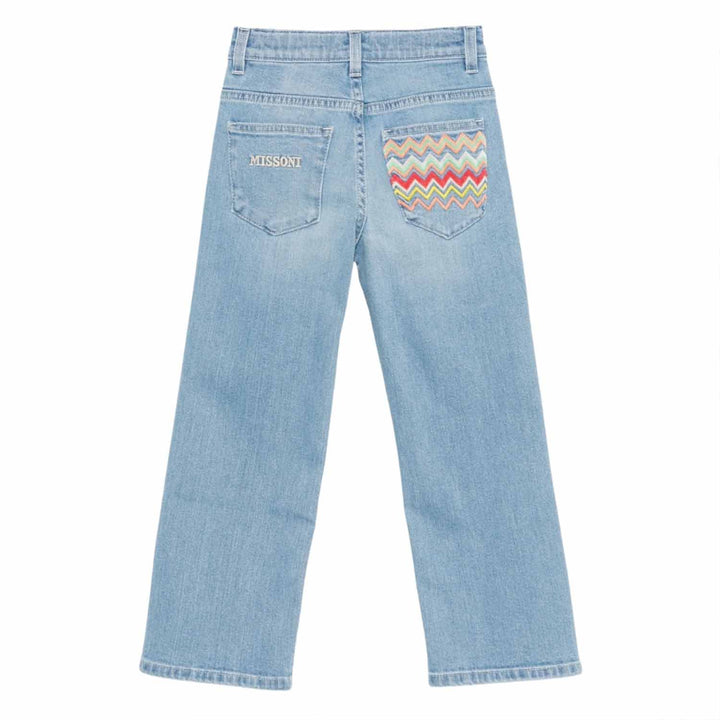 These Missoni Girls' Wide-Leg Jeans bring effortless style and comfort to your little one's wardrobe. Made from high-quality cotton denim, these light-wash jeans feature a relaxed, wide-leg silhouette for a modern and comfortable fit. The standout de