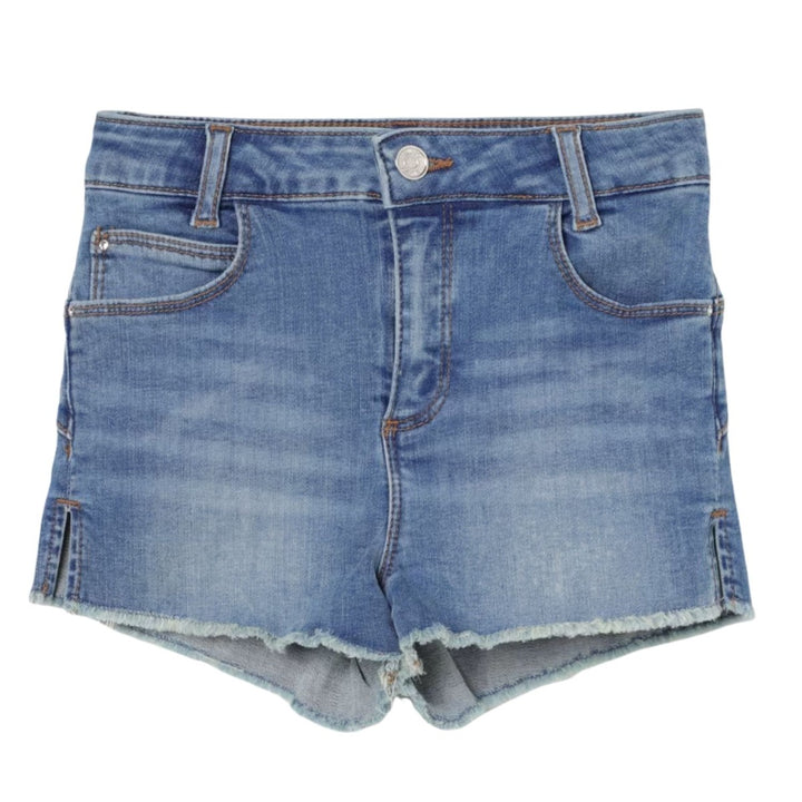 A summer wardrobe essential, these classic blue denim shorts are designed for all-day comfort and style. Made from soft, durable denim, they feature a faded wash effect, raw frayed hems, and slight side slits for a casual, worn-in look. The standard 5-pocket design and secure button-zip closure make them a practical yet fashionable pick. Perfect for pairing with tees, tanks, or crop tops during warmer days.