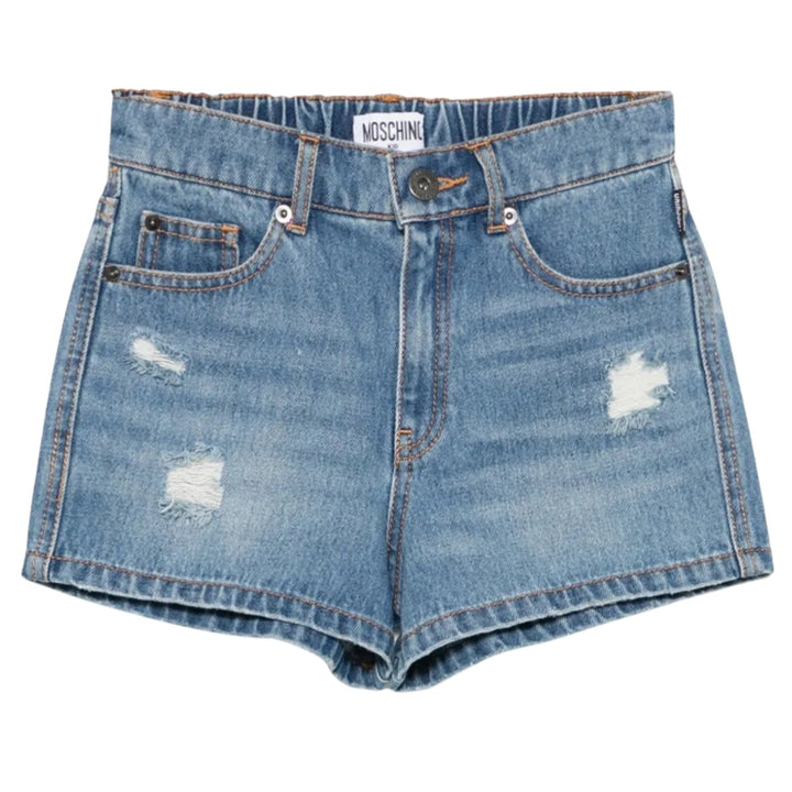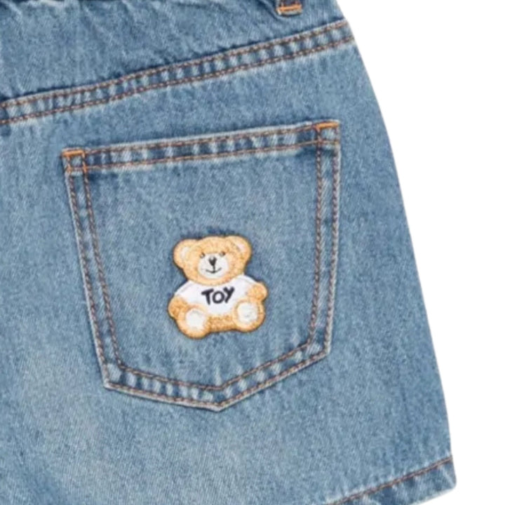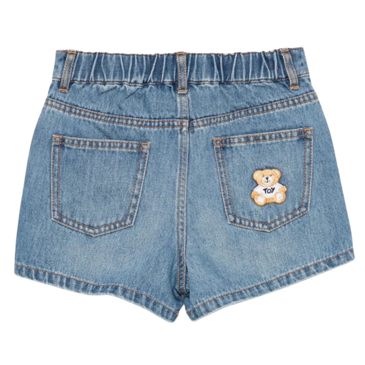 Girls Denim Blue Teddy Bear-Patch Shorts