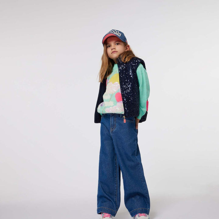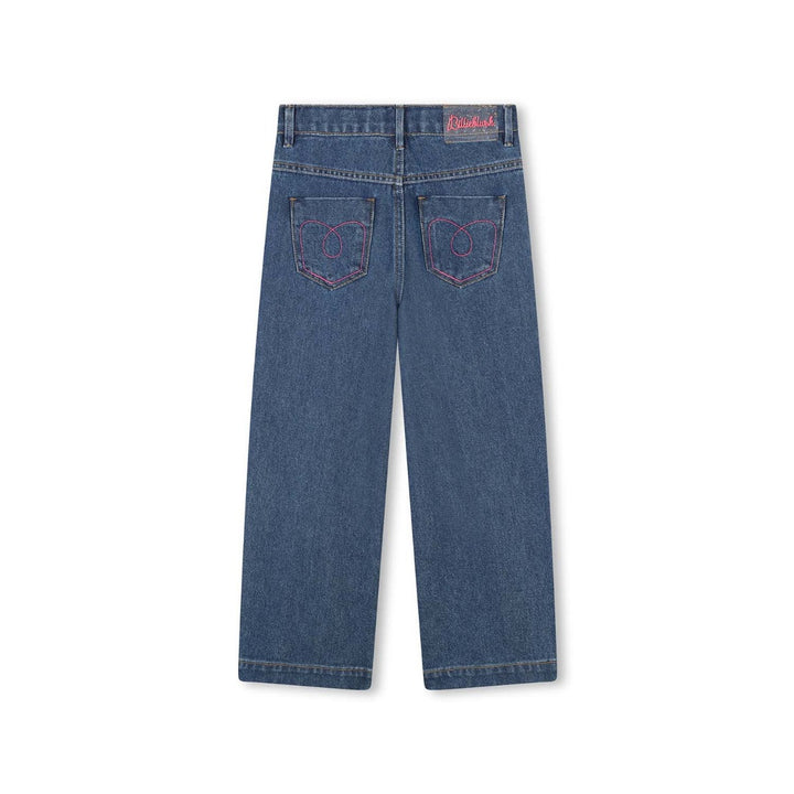 Girls Denim Blue Wide-Leg Jeans