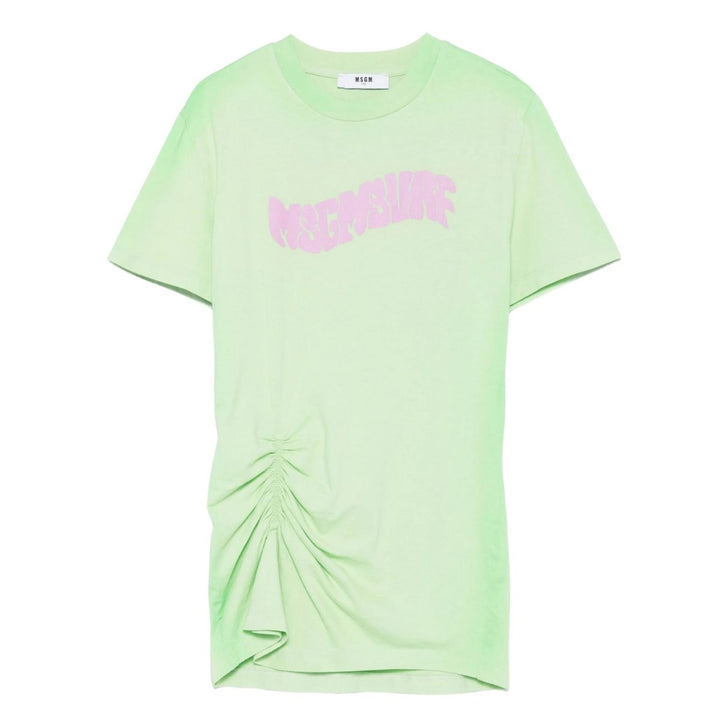 Brighten up their look with this sky blue mini dress from MSGM Kids. Featuring a bold logo print on the front and soft ruched detailing for a playful twist, this dress is perfect for sunny days and casual outings. Crafted from 100% cotton, its designed with a comfortable crew neck and short sleeves-combining everyday comfort with standout style.