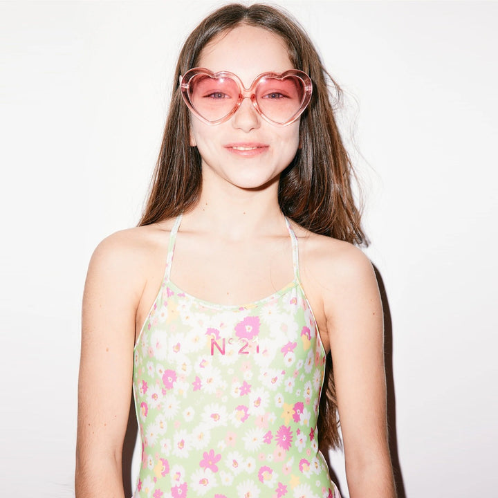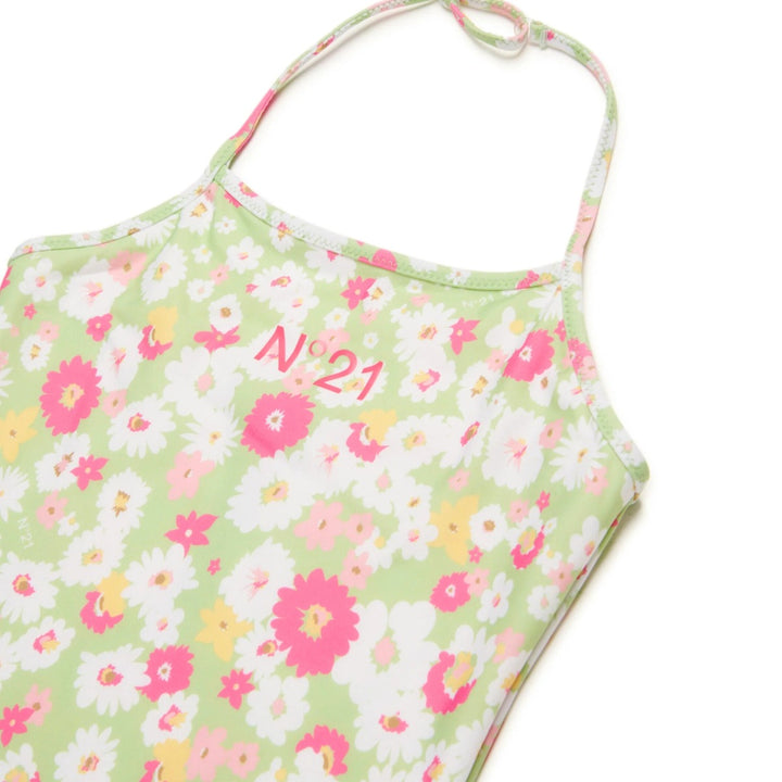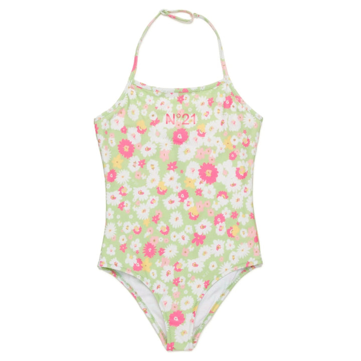 One-piece swimsuit in Lycra with all-over floral print. N21 Institutional logo on the front. Adjustable Lacing.