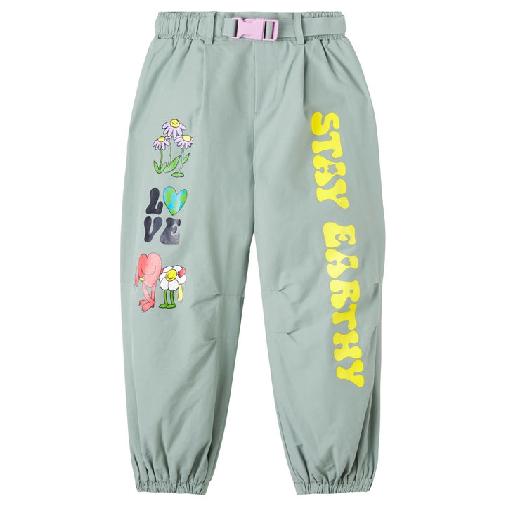 Girls Green Graphic-Print Elasticated Trousers