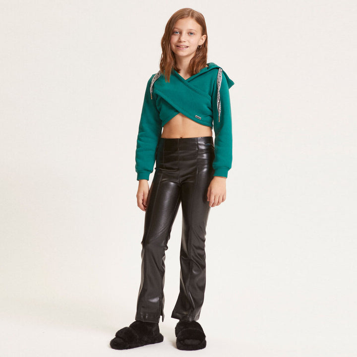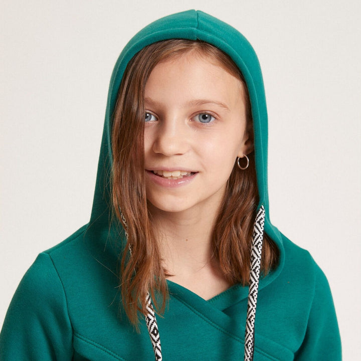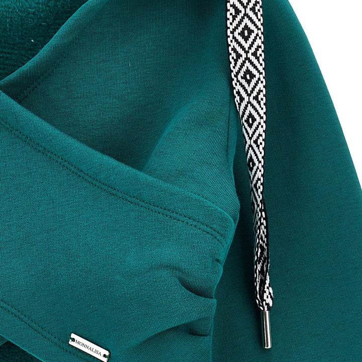 A stylish green hoodie for girls, featuring Monnalisa’s signature logo print. Designed with a comfortable fit, soft fabric, and casual appeal, it’s perfect for everyday wear with a trendy touch.