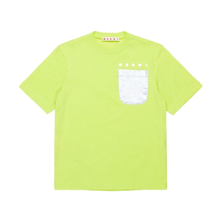 Girls Green Mylar-Pocket Cotton T-Shirt