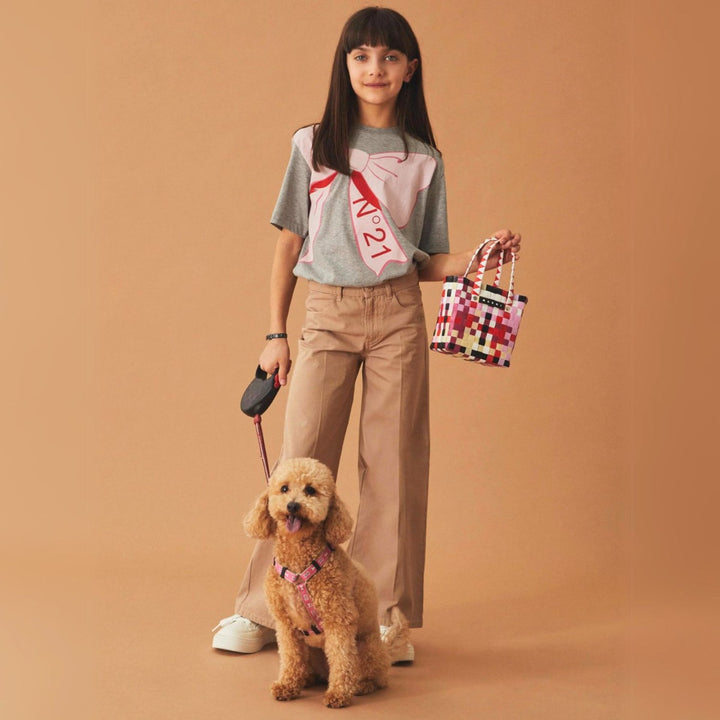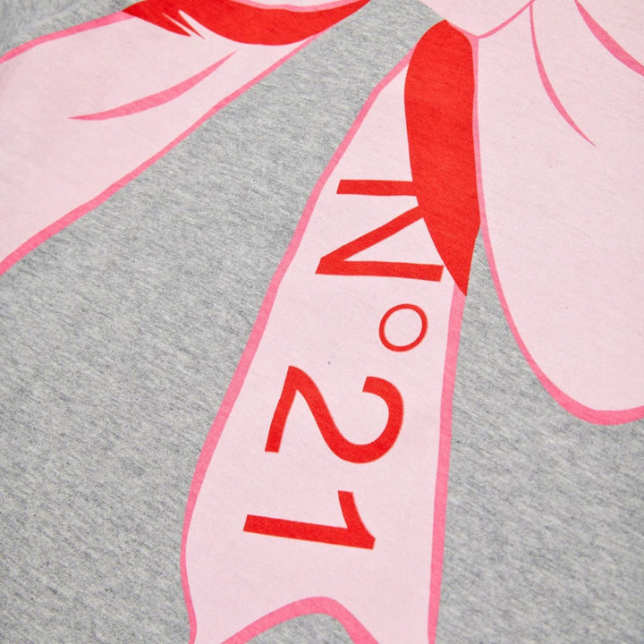 Short-sleeved crew-neck T-shirt in melange jersey. Features a cartoon-style bow print on the front. Made of 100 % cotton. An easy-to-match romantic option.