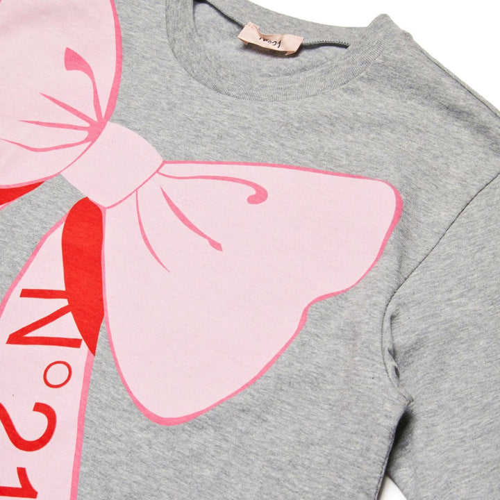 Girls Grey Cartoon-Bow Print T-Shirt