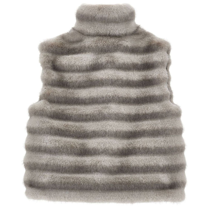Girls Grey horizontal quilted Fur Gilet