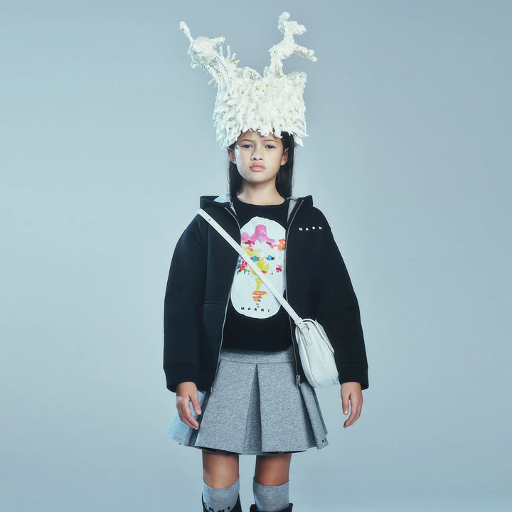 Give your little ones wardrobe a modern twist with this Marni Kids logo-print skirt. Crafted in a versatile heather grey tone, it features a fully pleated design and a raw-cut hem for a contemporary edge. The side zip fastening ensures a comfortable