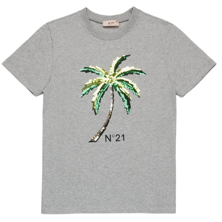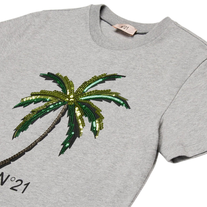 Short-sleeved crew-neck T-shirt in jersey. It features a sequined palm tree on the front accompanied by the N21 Institutional logo. Made of 100% cotton.