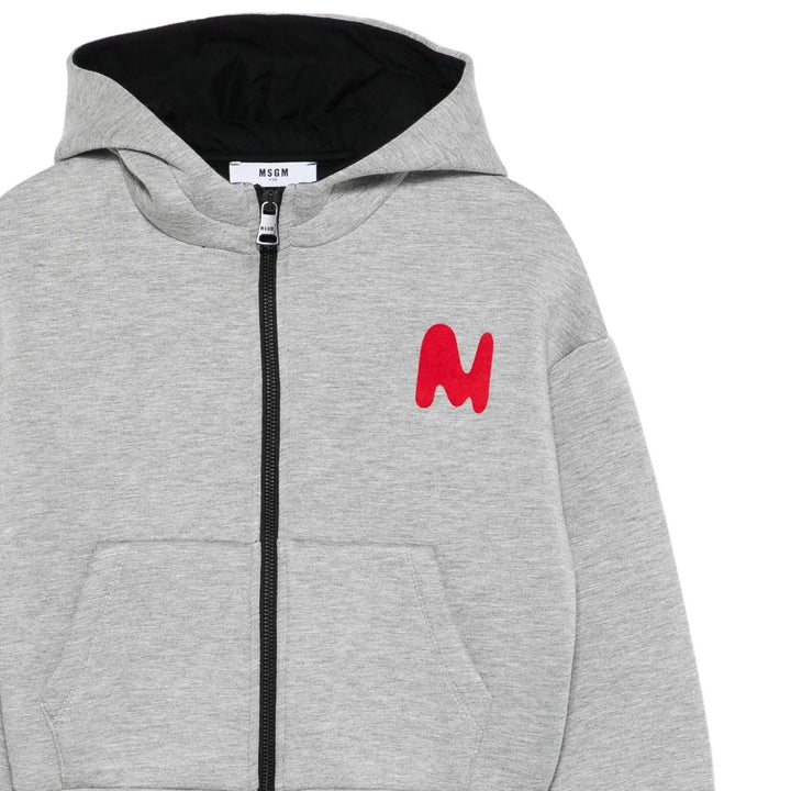 Girls Grey Zip-Up Logo-Patch Hoodies