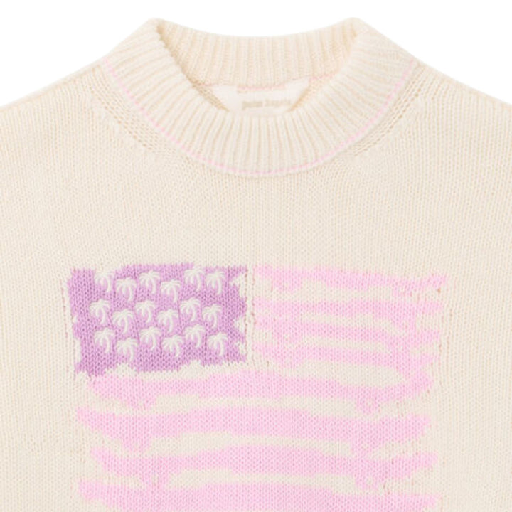 This cozy ivory Palm Angels sweatshirt combines premium comfort with signature branding. Made from soft knitted fabric, it features an embroidered logo print across the chest for a refined yet relaxed look.
