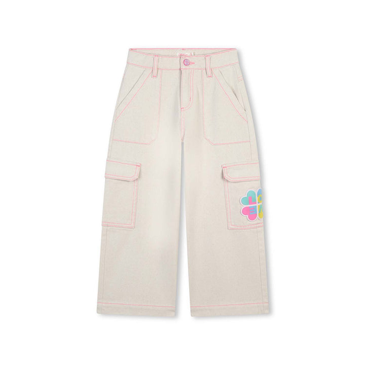 Girls Ivory Logo-Patch Wide-Leg Trouser