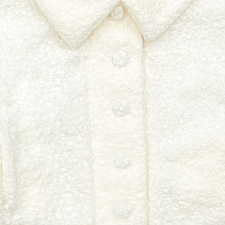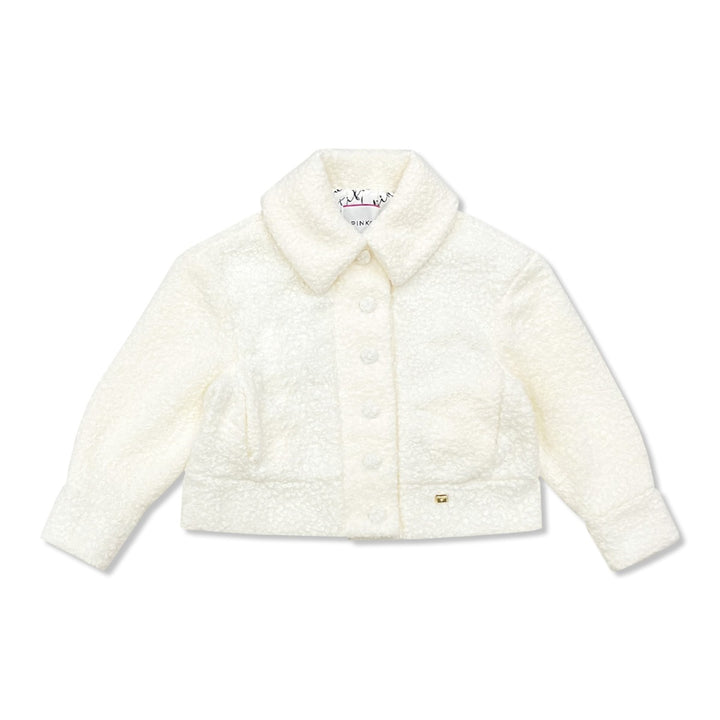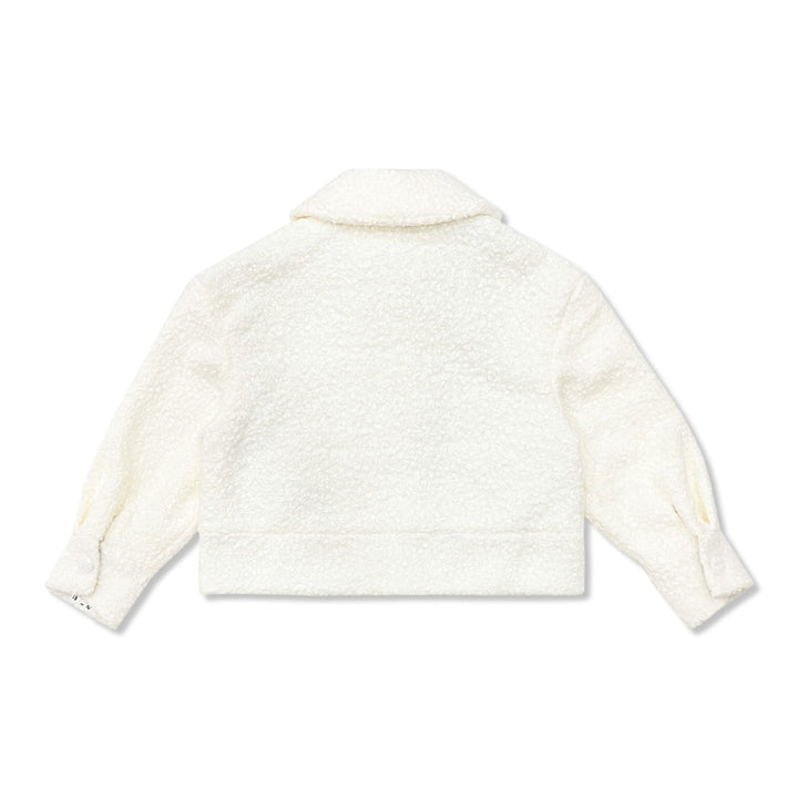 Girls Ivory Logo-Plaque Faux-Fur Jacket
