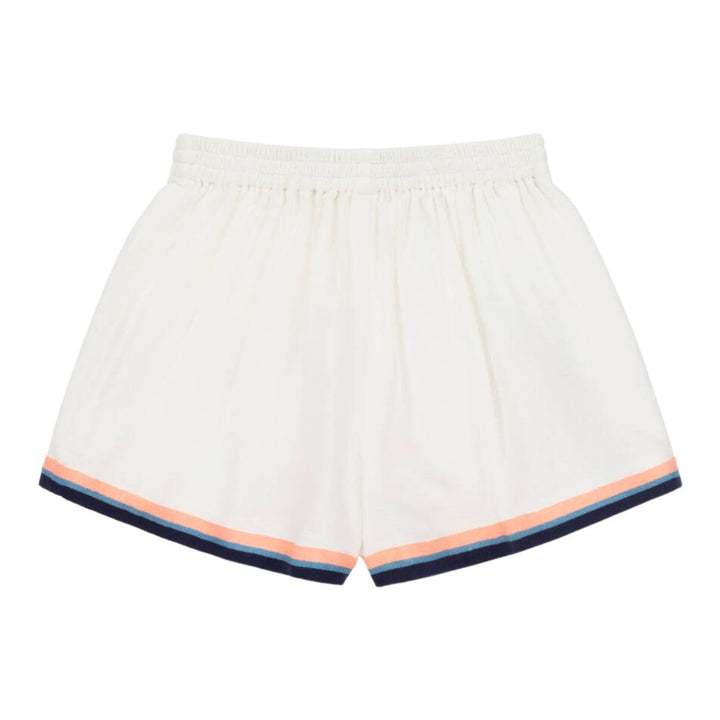 Lovely and casual ivory cotton shorts for girls by Australian brand, Zimmermann. There is a charming, nautical-themed print on the front and a pink flower motif on the back for an added feminine touch. Soft and lightweight, they are fully lined and g