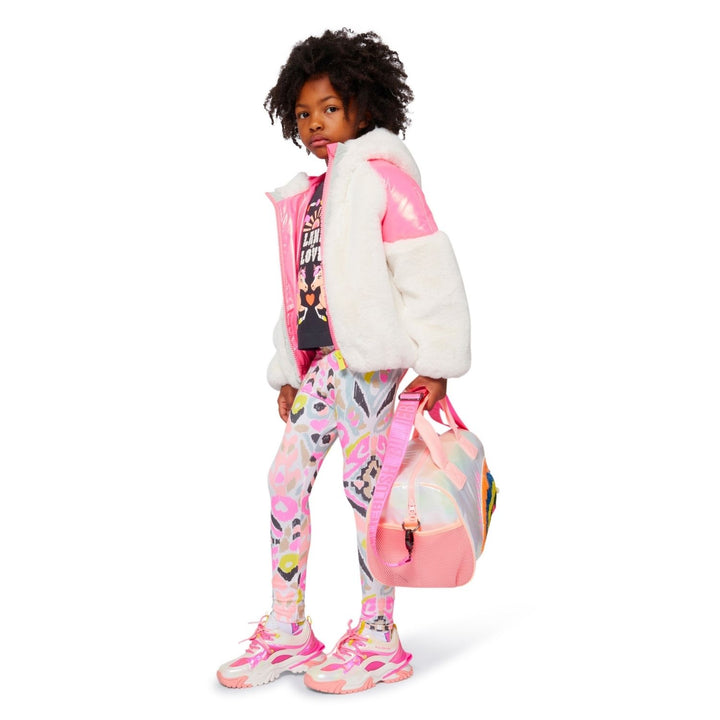 Girls Ivory & Neon Pink Faux Fur Jackets